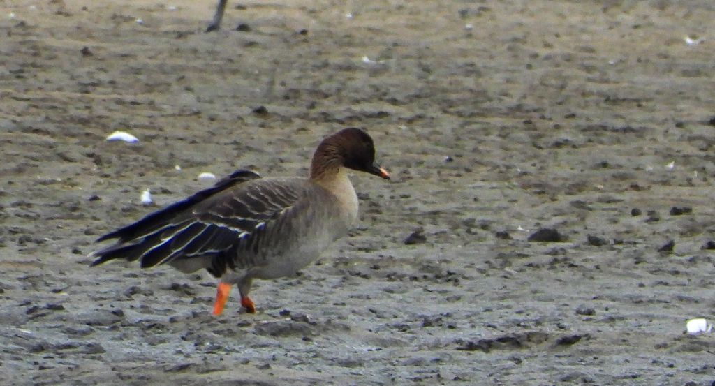 Gęś zbożowa, posiewnica (Anser fabalis) i czapla siwa (Ardea cinerea)